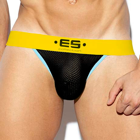 Jockstrap ES Collection Mesh Combi UN394. Discover this low waist Jockstrap which is very comfortable thanks to its straps on the back. Transparent mesh fabric on the front pocket. A belt with the brand name. A discreet Jockstrap under your clothes and at