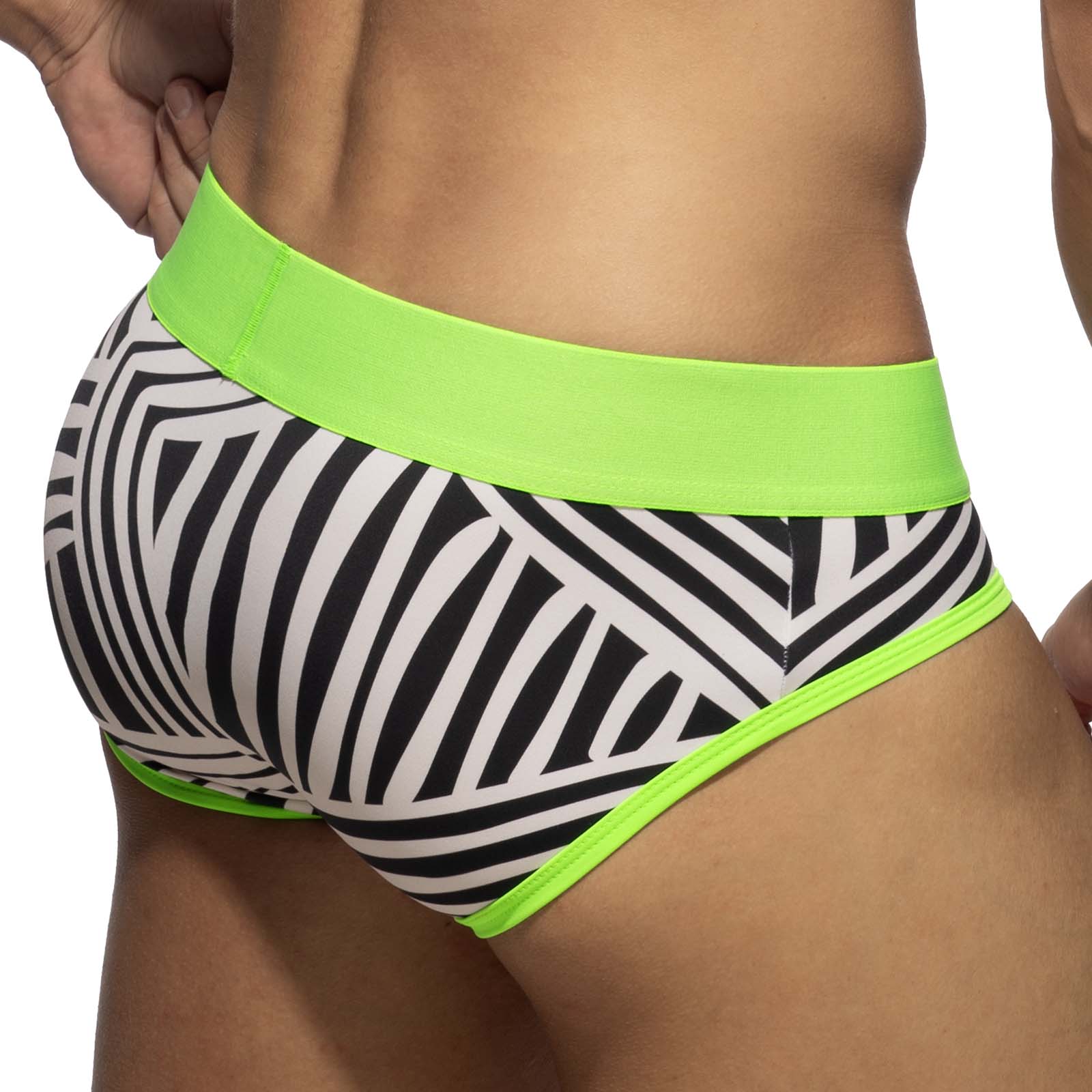 Swimderwear Addicted Tribal Brief AD1345. 2 in 1 briefs. Can be worn as both underwear and swimwear. Thanks to the microfiber material this allows for quick drying. Very soft to the touch. Innovative material and design that allow maximum comfort under pa