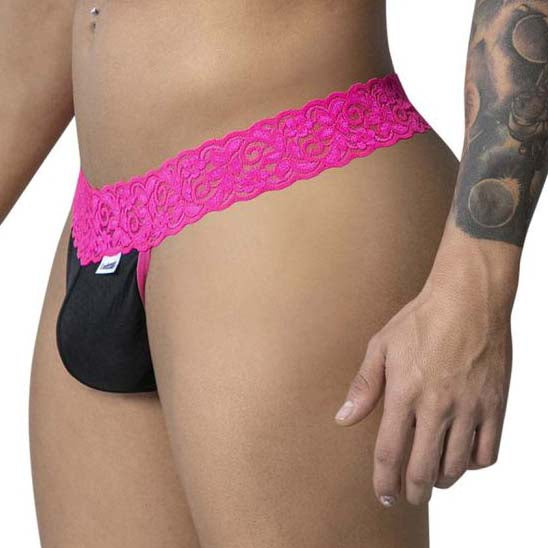 String Candyman 99370. Sexy thong that plays the card of sensuality with its lace on the belt. 94% nylon, 6% elastane.