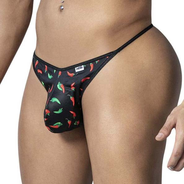 Candyman 99875 Thong. This minimalist thong, featuring a printed front pouch and thin side straps, offers a bold and revealing look while ensuring surprising comfort. Its lightweight fabric and ergonomic cut provide optimal support. 86% polyester, 14% ela