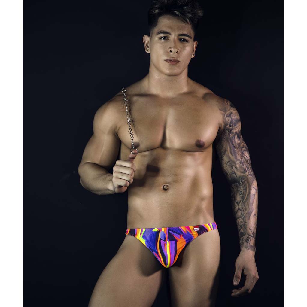 Pikante Abstract String PIK1829. Thong with a neon abstract pattern. Its vibrant color mix creates a dynamic visual impact, while its minimal coverage draws attention where you want it. Crafted from silky stretch fabric with a sculpted pouch and ultra-thi