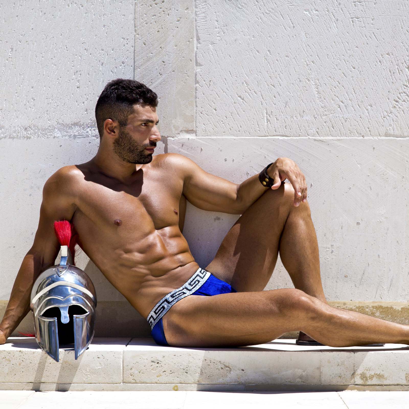 Tanga Modus Vivendi Greek Lux 13812. A blend of luxury materials and ancient Greek elements with meandering patterns (Greek key) on the shiny silver belt. You will love this silky tanga with its bright color. 80% Modal, 20% Elastane.