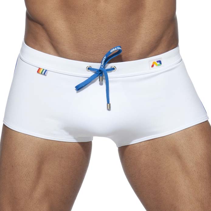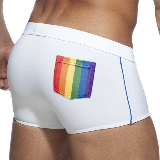 Boxer de Bain Addicted Rainbow ADS196. Mettez en avant vos atouts avec le système Pack Up amovible (mousse fine et discrète) sur le devant pour un galbe parfait même lorsque vous sortez de l’eau. Ceinture élastique avec le logo AD. Petite poche à l’arrière multicolore. 80% Polyester, 20% Élasthanne.
