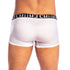 Boxer L'Homme Invisible Plissé MY39PLI. Boxer fabriqué en microfibre blanche aux micro-plissés 3D crée un relief subtil qui capte la lumière et structure naturellement la silhouette. La coupe hipster push-up met en valeur le galbe avec précision tout en conservant un confort seconde peau. Une matière extensible, respirante et ultra légère. Fine ceinture élastique argent et noir ornée des lettres LHI façon méandre. 55% Polyester, 35% Tactel, 10% Elasthanne.