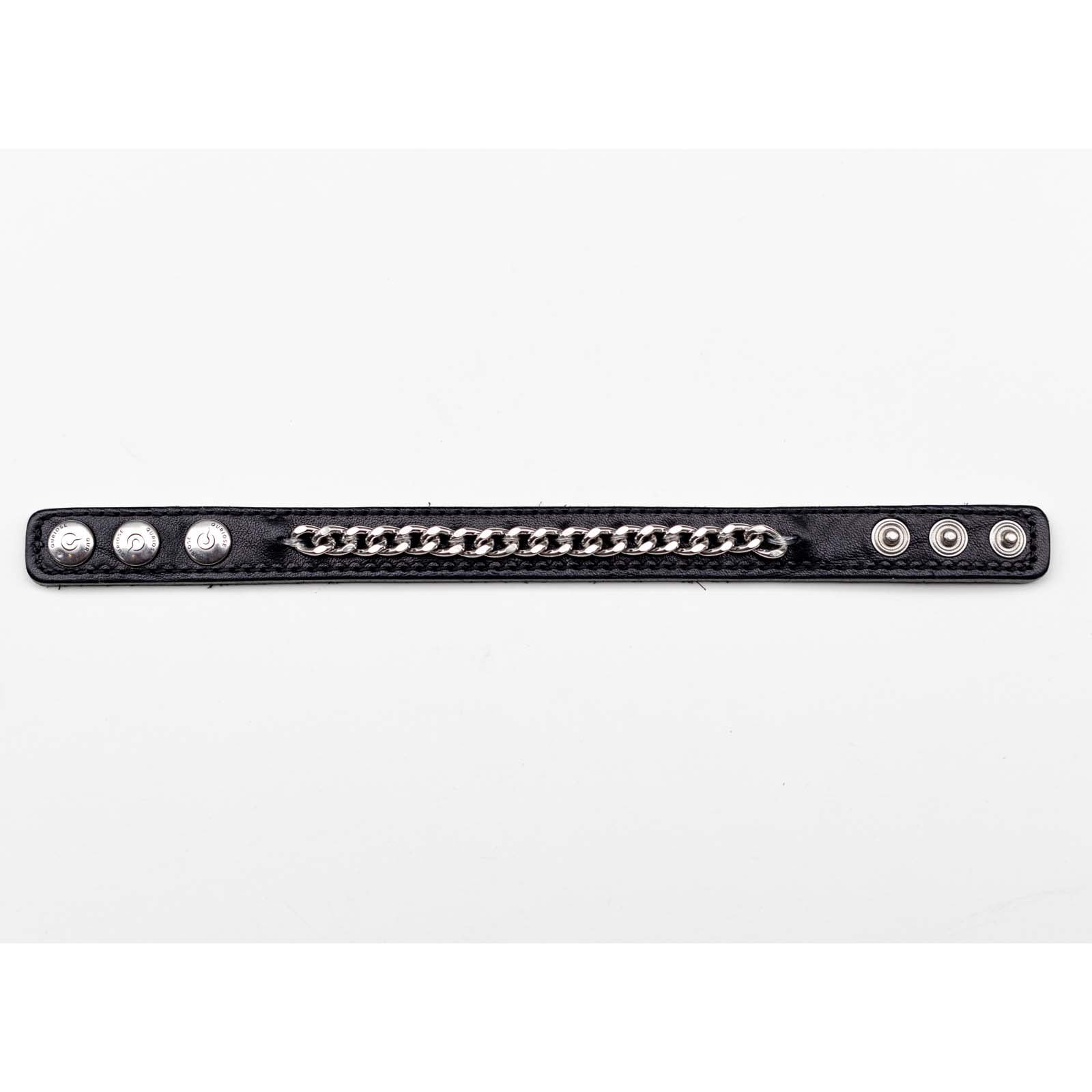 Cockring Quriose Mencore CR1. Découvrez ce Cockring en cuir au tannage végétal qui se pare de chaines en métal argenté. Circonférence minimum : 12 cm, Circonférence maximum : 19 cm. 3 Boutons pression. 100% Cuir.