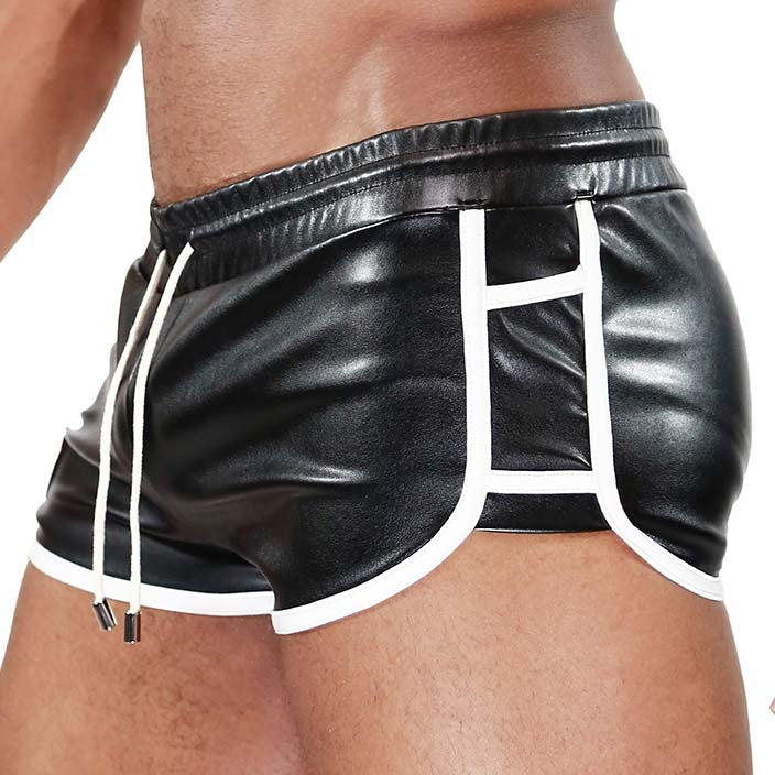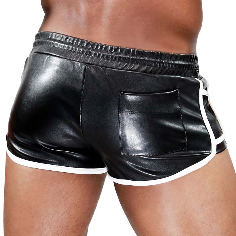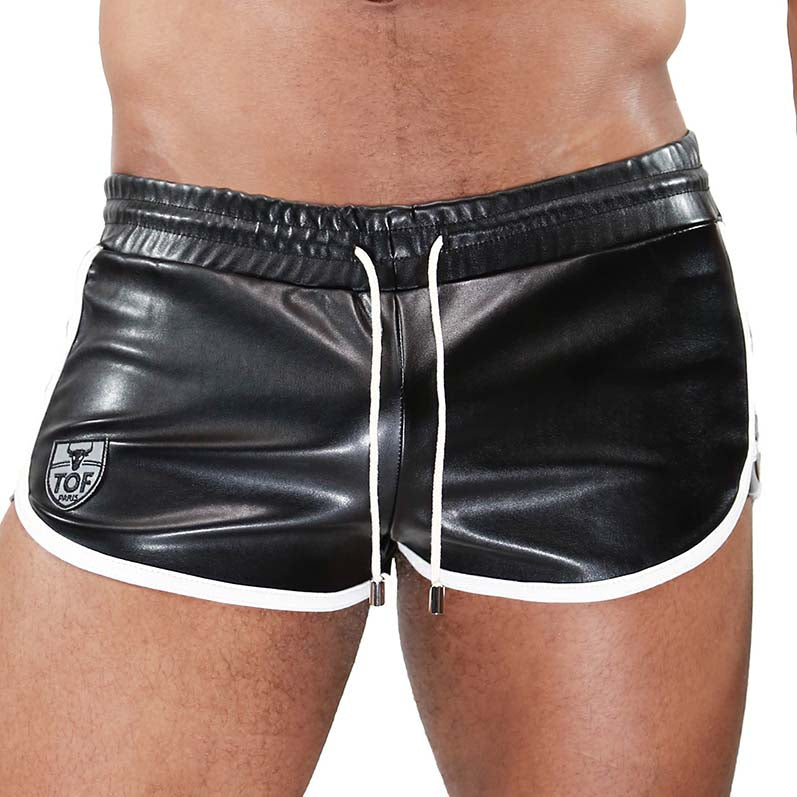 Short Cruise Delux TOF PARIS SH0003SNB. Short sexy dinspiration fetish, dans une coupe courte et ajustée. Tissu en aspect cuir. Bandes de couleur contrastées avec des liserés blancs. 2 Mini poches sur les côtés et une à larrière. Ceinture élastique avec cordon de serrage extérieur. Ecusson au nom de la marque sur la cuisse droite. 100% Polyester.