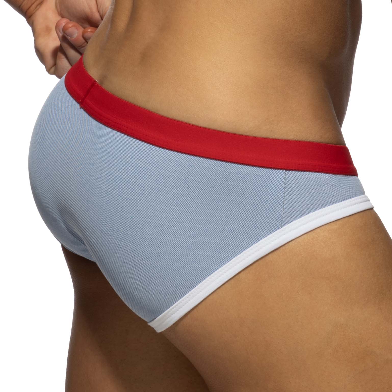 Slip Addicted Pique Jeans AD1409. Sous-vêtement masculin alliant confort et style denim au confort absolu. Ceinture élégante et fine, ultra-extensible pour un ajustement parfait. Logo AD sur le devant de la ceinture. Poche avant généreuse. 92% Polyamide, 8% Elasthanne.