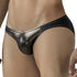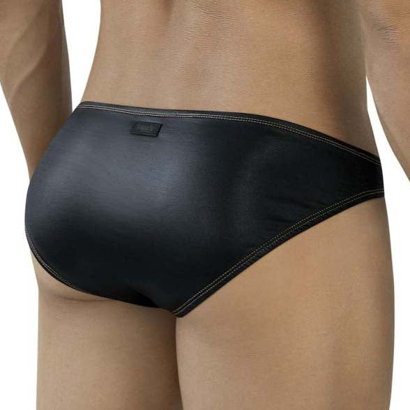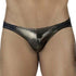 Slip Pikante Gold Cup PIK2121. Faites monter la température avec ce slip de bikini effet mouillé qui associe un dos noir élégant à un empiècement avant doré métallisé audacieux. Sa coupe taille basse épouse parfaitement les hanches, tandis que sa finition lisse et brillante met en valeur votre silhouette et vous assure une allure sophistiquée et affirmée. 88% Nylon, 12% Elasthanne.