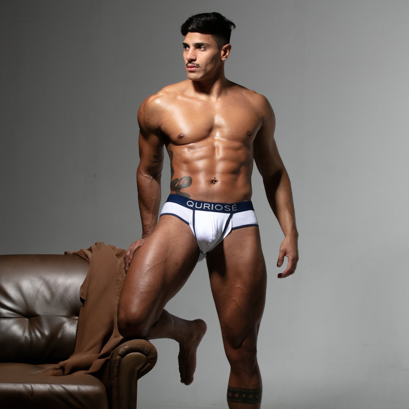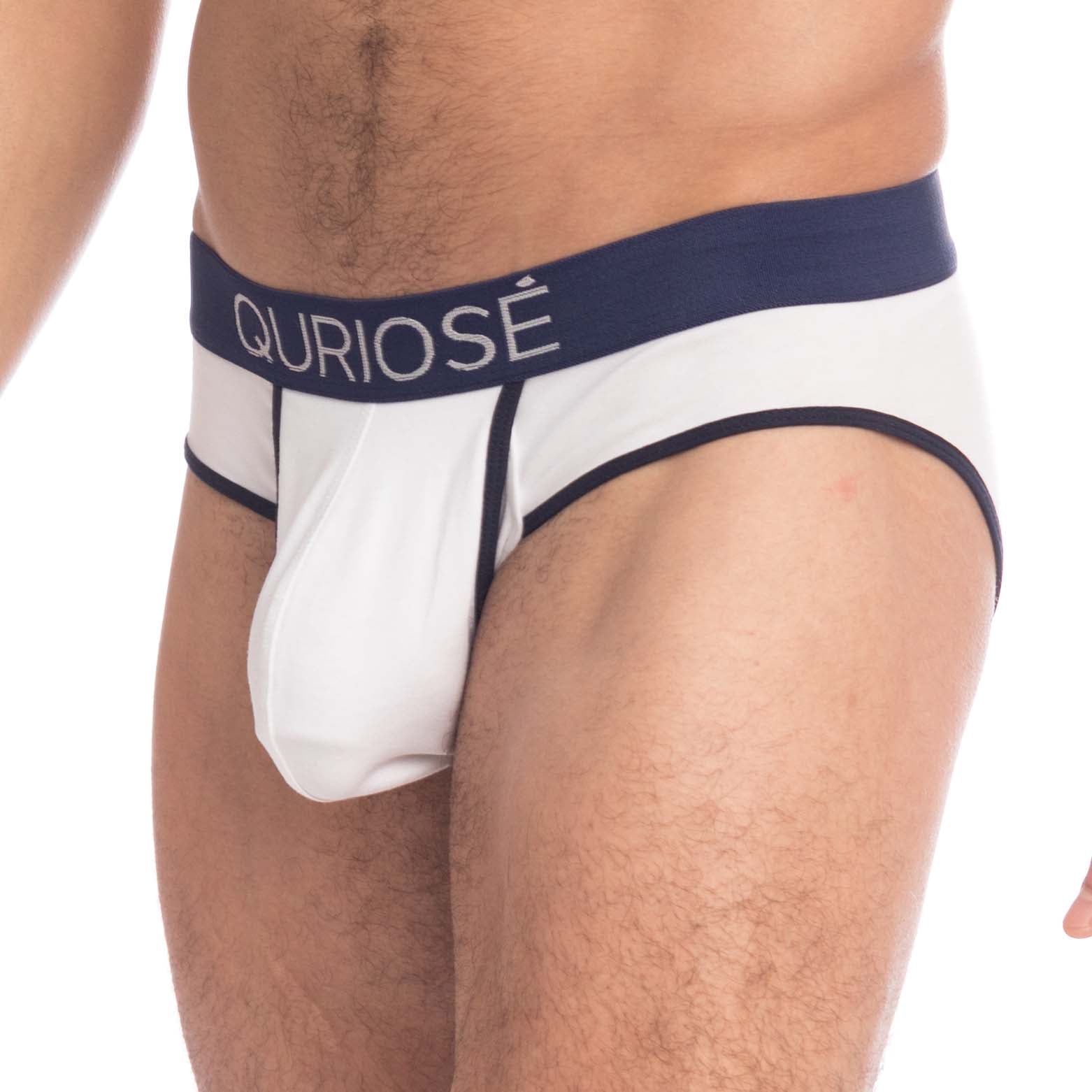 Slip Quriose Let me out QU21TWO. Slip dans une matière ultra légère et douce. Il saura vous mettre en valeur grâce à sa coupe et sa taille basse. Poche avant innovante avec une séparation en tissu permetant disoler le penis. et lautre le recouvre. Effet Push Up. 96% Coton, 4% Elasthanne.