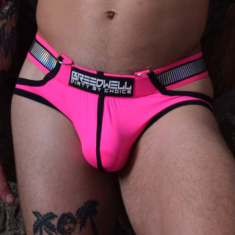 Slip Reflector BREEDWELL. Slip avec bande métallique irisée arc-en-ciel tricotée le long de la ceinture, qui capte la lumière de jour comme de nuit. Vous allez adorer le porter. Slip avec la poche avant doublée. Ceinture logotée au nom de la marque. 82% Nylon, 18% Elasthanne.