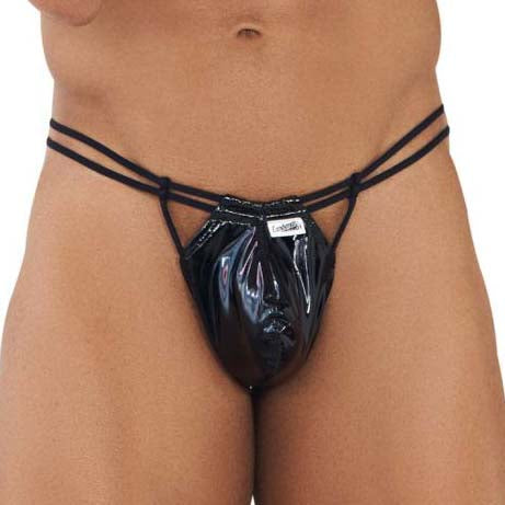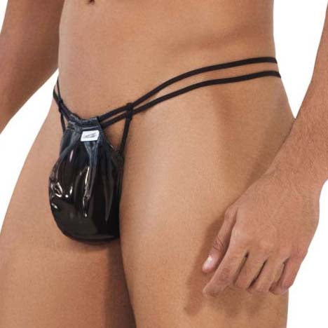 String Candyman Dom 99711. String très sexy qui joue la carte de la sensualité en vinyl. Tissu en microfibre extensible pour un ajustement confortable. 97% Polyester, 3% Elasthanne.
