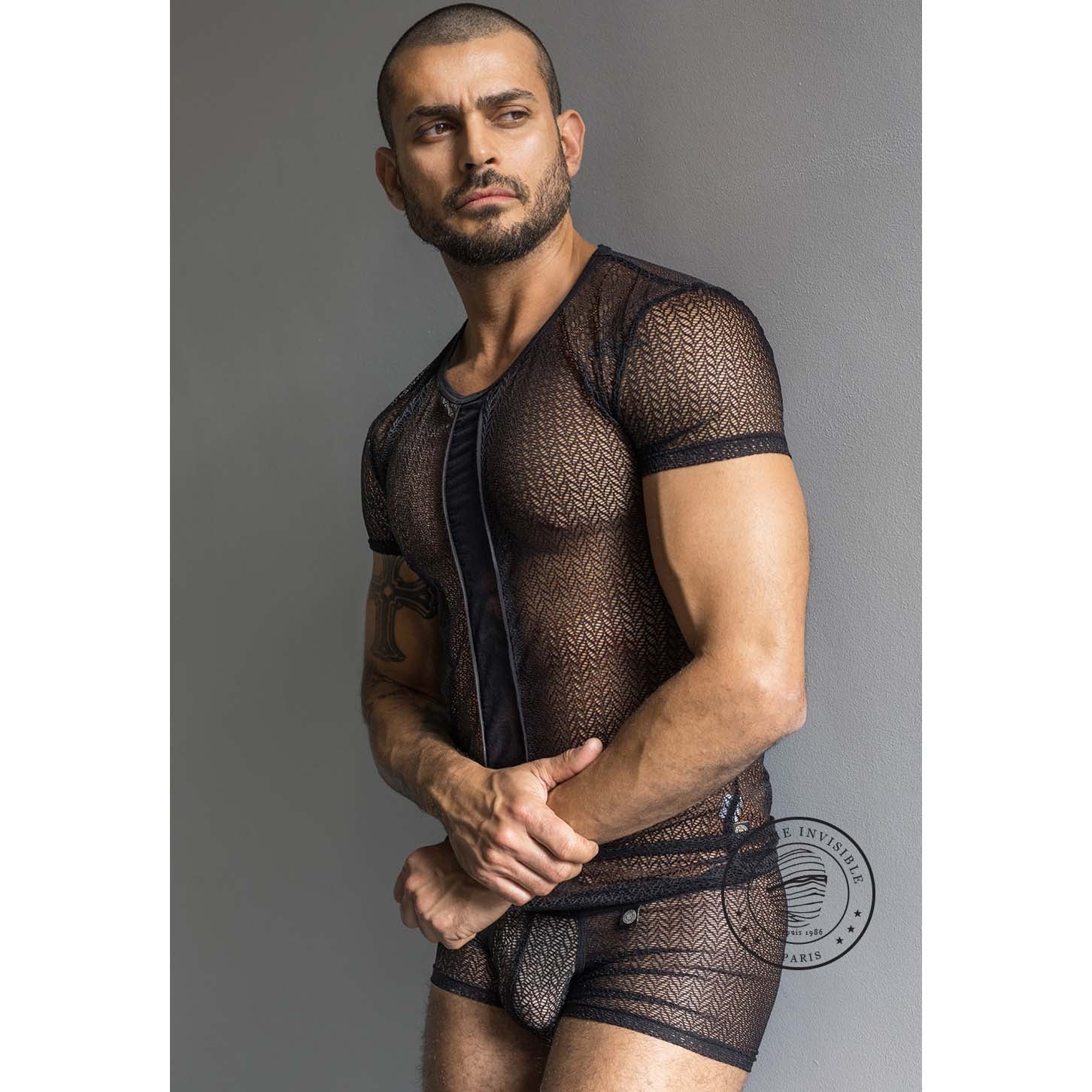T-Shirt L’ Homme Invisible Viridios US02ATL. Découvrez le charme irrésistible de ce t-shirt en dentelle très fine. Col rond et manches courtes. Il laisse apparaître votre peau grâce à sa transparence délicate et subtile avec des détails graphiques. Bande noire sur le devant. Le style séducteur de ce t-shirt luxueux vous rendra encore plus sexy que vous êtes. 82% Polyamide, 18% Élasthanne.