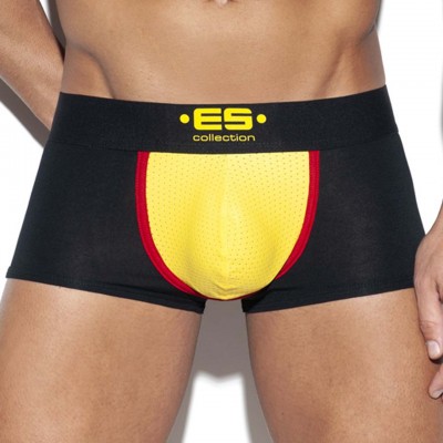 Boxer Empty Bottom ES Collection Flag UN381. Discover this low waist Boxer Empty Bottom that is very comfortable thanks to the mixture of materials. Very soft, silky and light you will love wearing it. A belt logoed in the name of the brand. A discreet underpants under your clothes and at the forefront of mens fashion! Mesh fabric front pocket. 70% Viscose, 20% Polyamide, 10% Elastane.