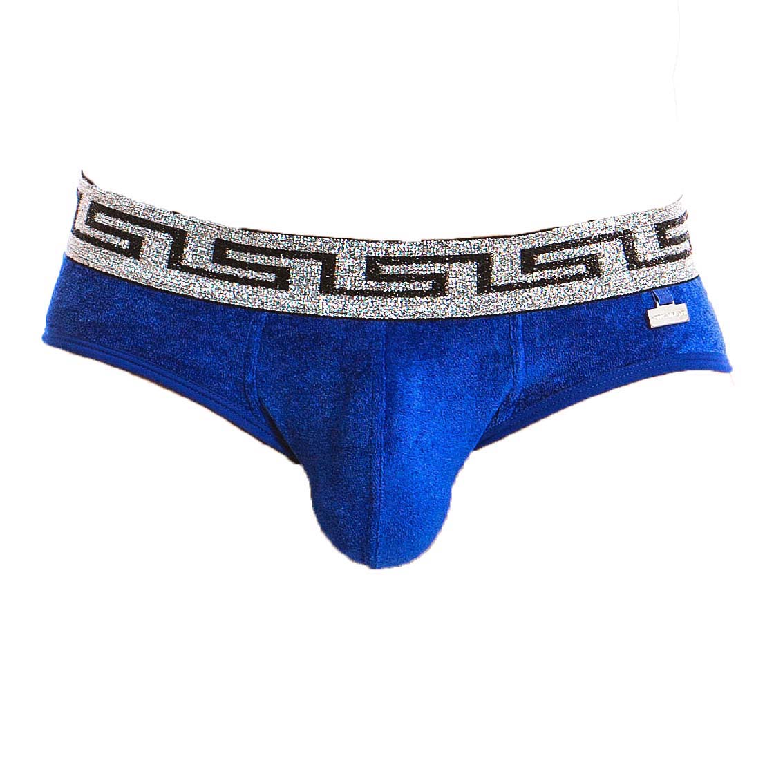 Brief Modus Vivendi Greek Lux 13813. A blend of luxury materials and ancient Greek elements with meandering patterns (Greek key) on the shiny silver belt. You will love this silky Brief with its bright color. 80% Modal, 20% Elastane.