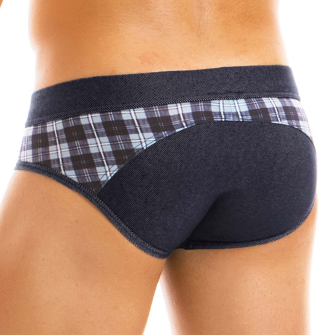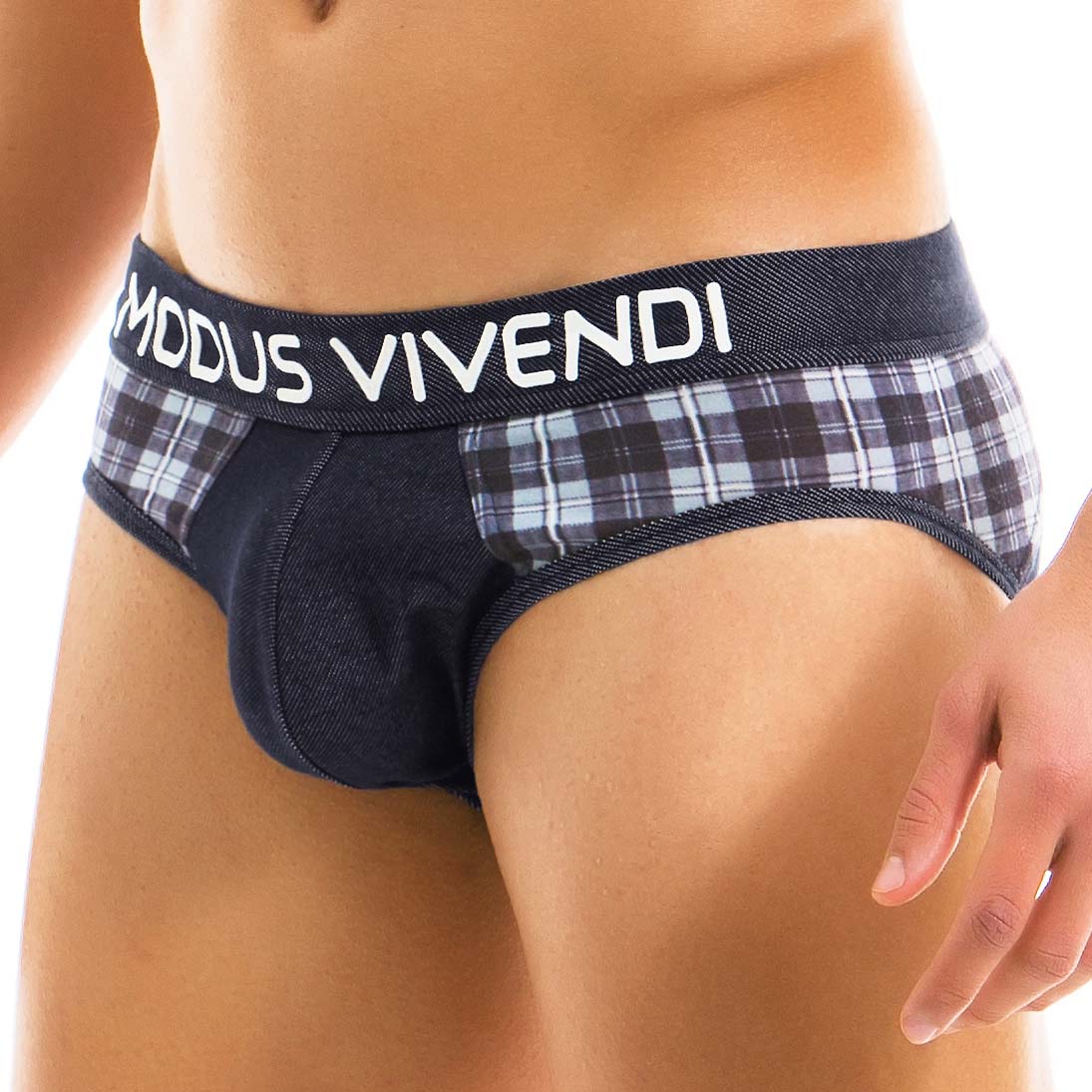 Brief Modus Vivendi Jeans 12913. Brief with wide belt logoed Modus Vivendi. Thanks to the mixture of materials this undergarment becomes the essential of your dressing. Plaid pattern on the sides and jean look on the pocket. 70% Viscose, 25% Polyester, 5% Elastane.