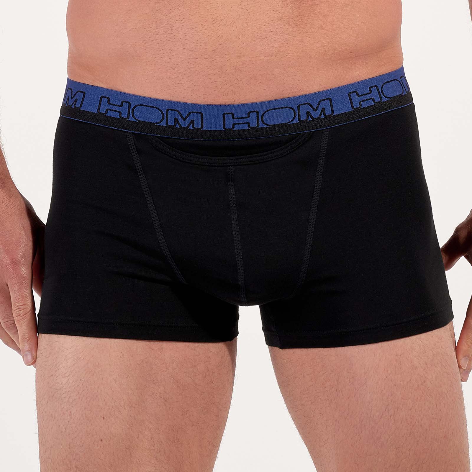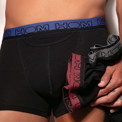 HOM 3-Pack H01 Boxers. These plain boxers are made from soft cotton enriched with elastane, guaranteeing flexible and breathable comfort all day long. The HO1 cut, a signature of the HOM brand, offers a practical and ergonomic patented horizontal opening, suitable for both left- and right-handed users. The soft microfiber waistband with the HOM logo ensures support and stability without rolling or compressing. 95% Cotton, 5% Elastane.