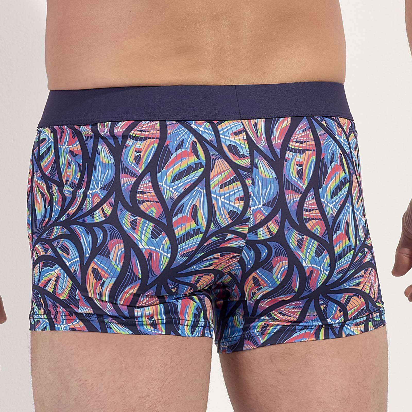 HOM Boxer Indian Creek 403139. Boxer shorts with a colorful ethnic print, designed by RS Artist. Limited edition. Made from fine microfiber, this style hugs the bodys curves while remaining lightweight, soft, and breathable. The elastic in the front panel ensures a perfect fit, while the elasticated hem prevents any riding up. An impeccable cut that guarantees comfort no matter your movements. 90% Polyamide, 10% Elastane.