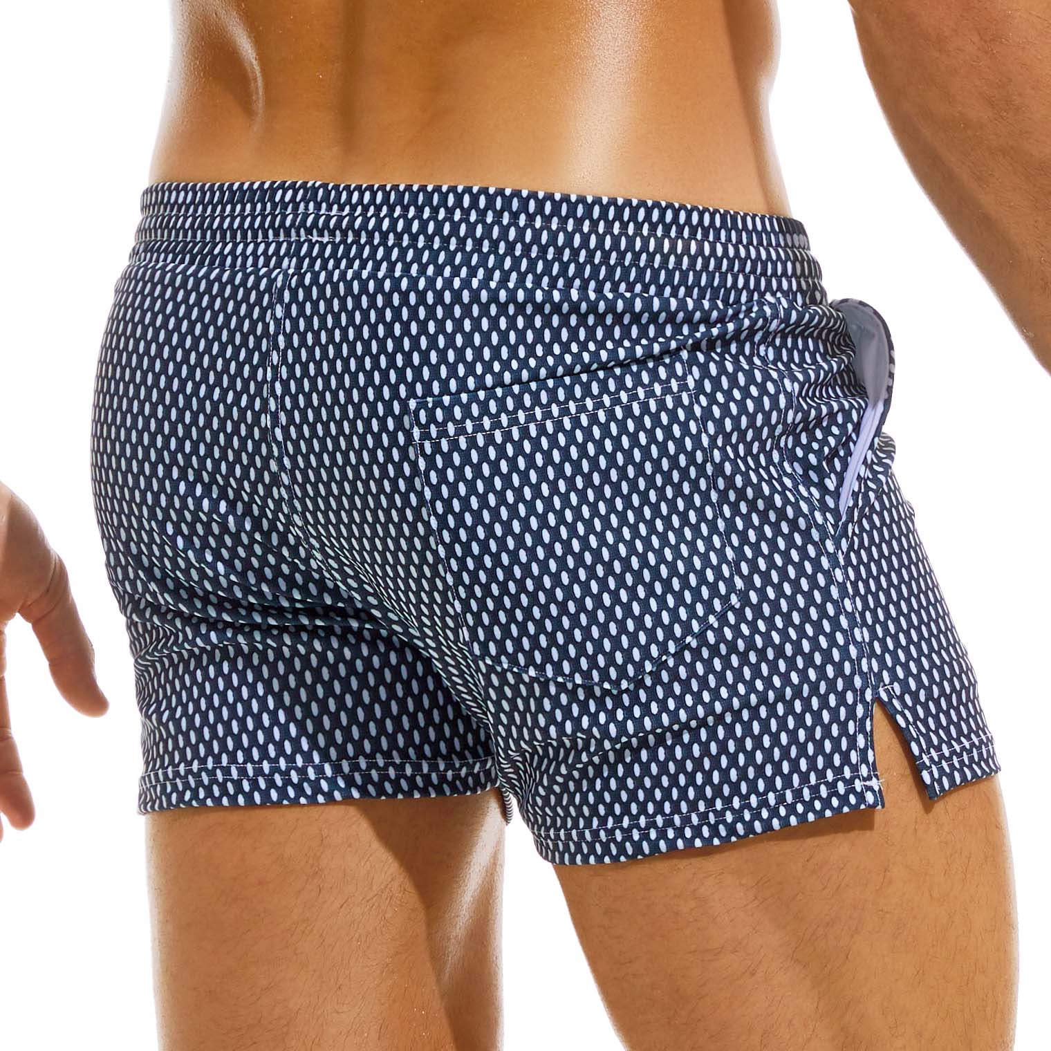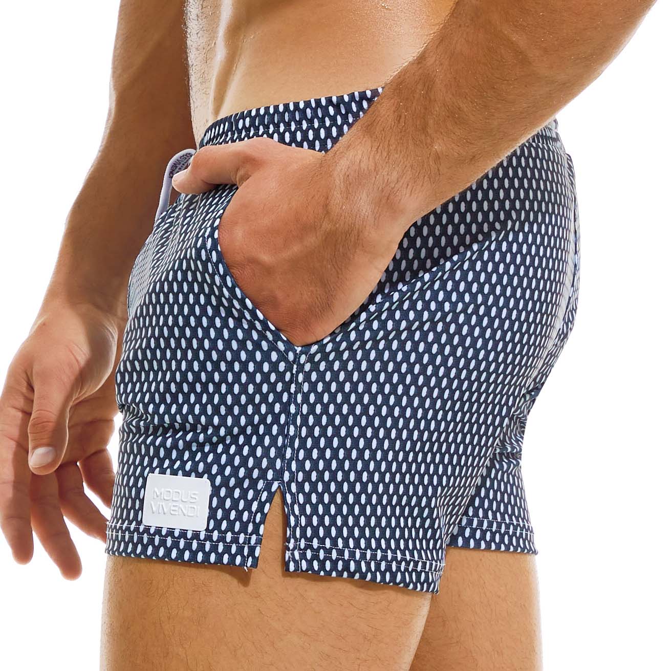 Modus Vivendi Cyclops AS2231 swim shorts. Low rise swim shorts. Brand logo on the left thigh. Elastic waistband with interior drawcord. Inner slip for maximum support. Pocket on each side. Quick drying thanks to its mix of materials. Hand wash recommended. 80% Polyester, 20% Spandex.