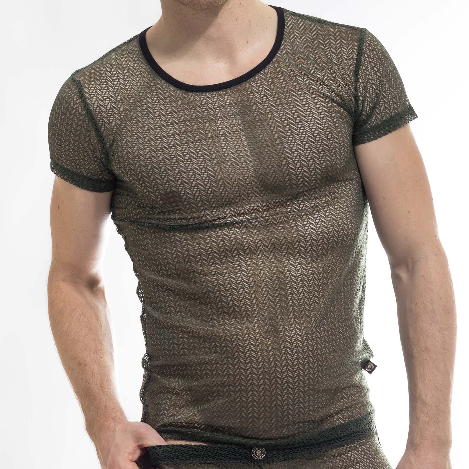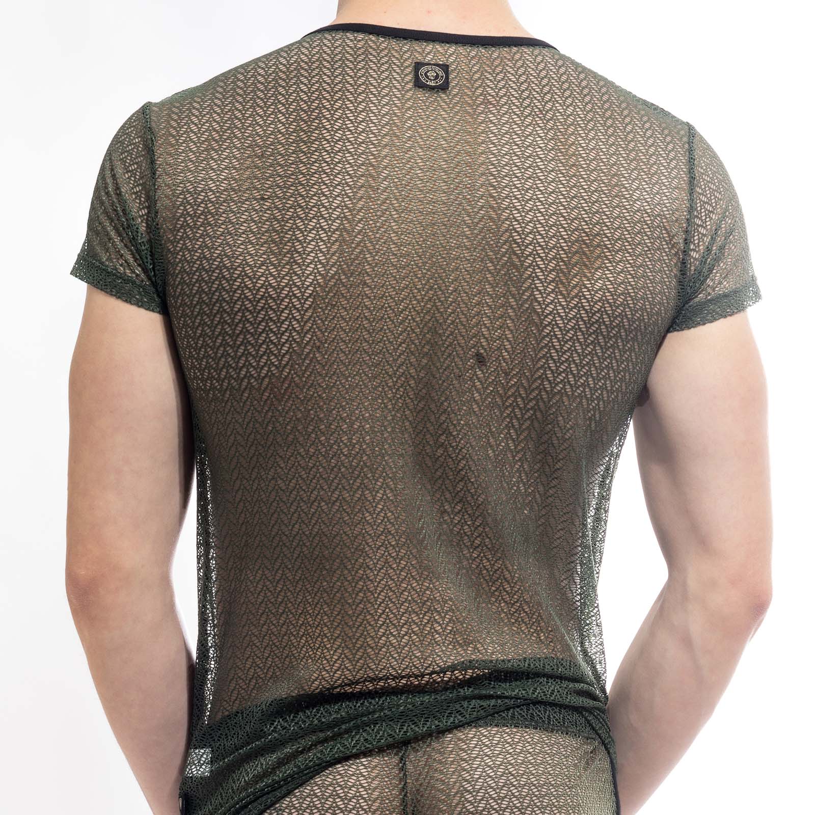 T-Shirt The Invisible Man Viridios MY92ATL. Discover the irresistible charm of this very fine lace t-shirt. Round neck and short sleeves. It reveals your skin thanks to its delicate and subtle transparency with graphic details. The seductive style of this luxurious t-shirt will make you even sexier than you are. 82% Polyamide, 18% Elastane.