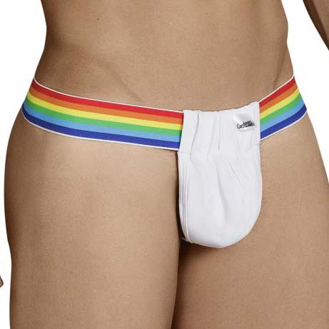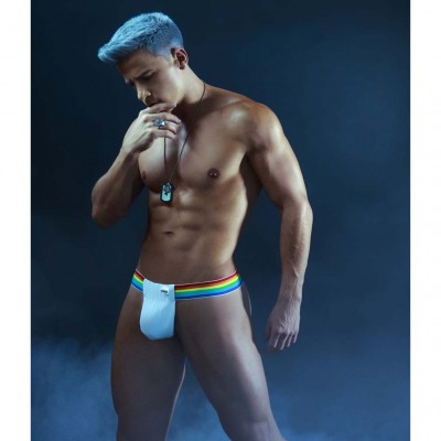 String Candyman 99374. Very sexy thong that plays the card of sensuality with the back in V. Small opening on the front to reveal your skin. Multicolor flag print on the belt. 92% Nylon, 8% Elastane.
