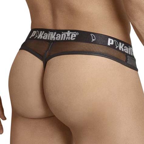 Pikante thong PIK8053. This String allows you to be both sexy and elegant and showcases your best assets. It gives you a perfect fit that accentuates your masculine contours. Brilliant fabric on the front and transparent Mesh on the back. Elastic belt logoed in the name of the brand. 89% Polyester, 11% Elastane.
