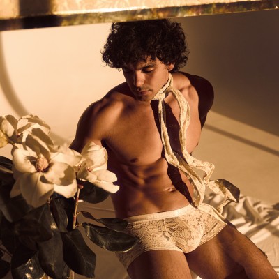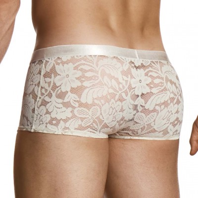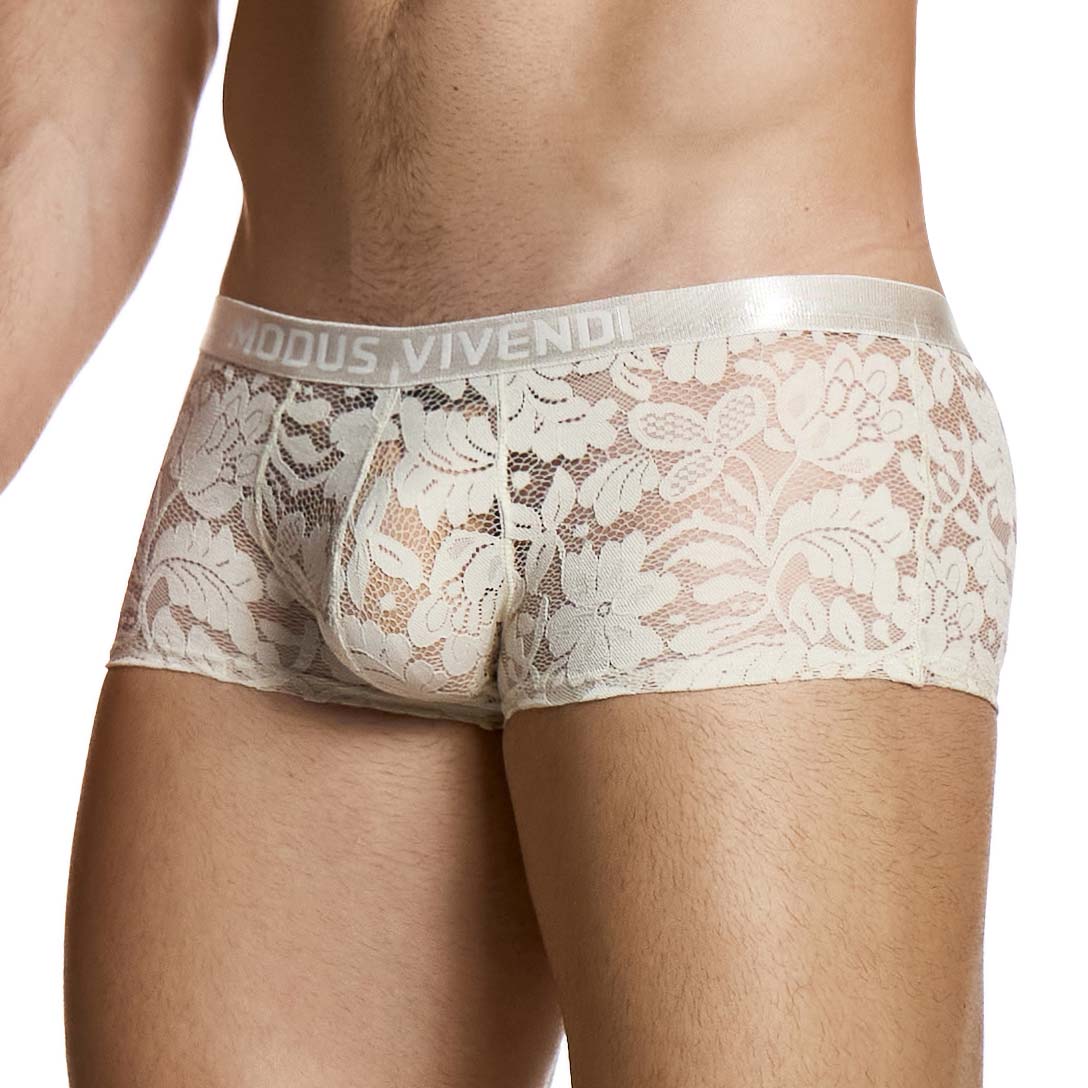 Trunk Modus Vivendi Floral Lace 04121. Modus Vivendi presents the Floral Lace range. Low waist Trunk with brand logo on the front. Very minimalist cut. Semi transparent floral lace, very chic. 95% Cotton, 5% Elastane.