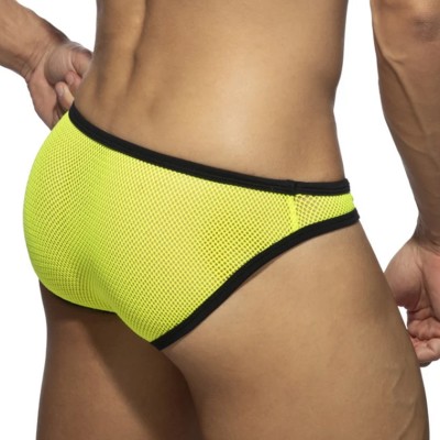 Bikini Addicted Fever Mesh AD1332. Mini-slip pour homme conçu pour allier séduction et confort. Matière en mesh légère et extensible qui épouse parfaitement les formes du corps. Design audacieux. Bordures contrastantes en couleurs vives. 85% Polyester, 15% Elasthanne.