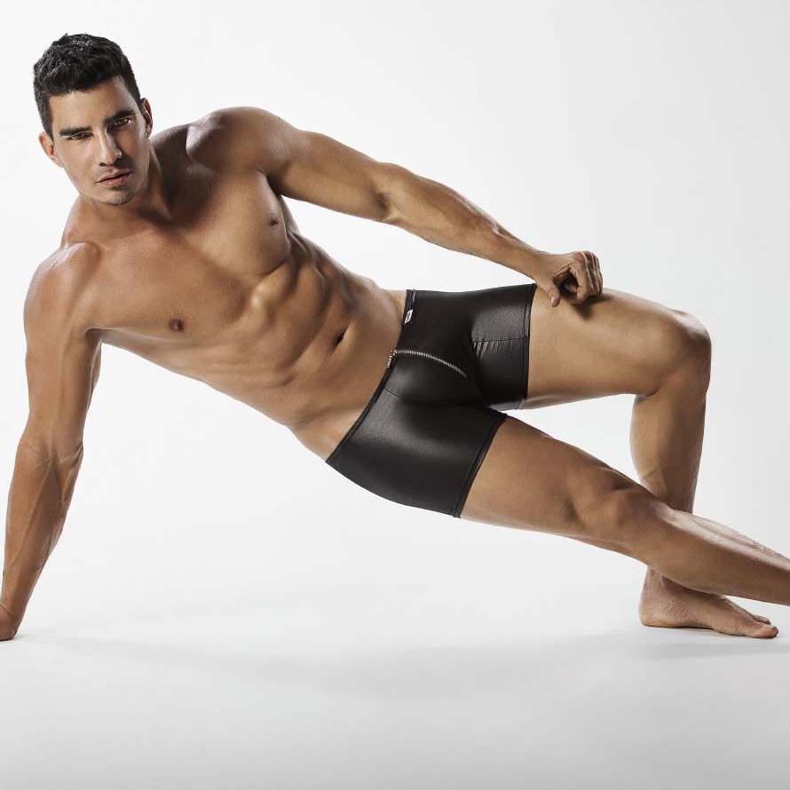 Boxer Candyman 99198. Boxer taille basse en simili cuir pour être super sexy. Fermeuture éclaire sur le devant pour tout faire découvrir... 93% Nylon, 7% Elasthanne.
