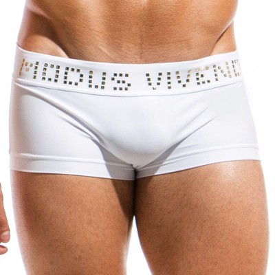 Maillot de Bain Modus Vivendi Brand BS1821. Un Boxer de bain parfait pour cet été, avec son style chic vous allez ladorer ! Ceinture logotée au nom de la marque avec des cubes métalliques brillants. Très sexy et élégant, vous passerez de la plage aux soirées en un clin doeil. 80% Polyamide, 20% Elasthanne.