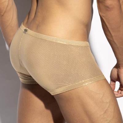 Boxer Trunk ES Collection Radiant Gold UN635. Un tissu métallisé scintillant qui vous permet de briller de mille feux. Une matière incroyablement douce, ultra-légère et agréable à porter, il offre une silhouette élégante et époustouflante. Les coloris clairs, non doublés, offrent un effet transparent subtil. Poche généreuse et extensible.Etiquette ES Collection en silicone au dos. 80% Polyamide, 20% Elasthanne.