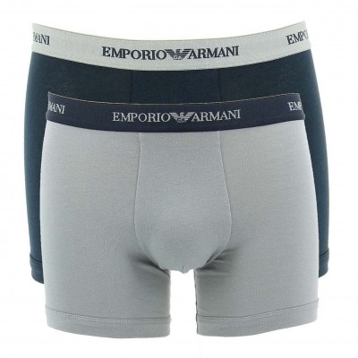 Pack Stretch Coton de 2 Boxers Emporio Armani 111268 C717 en 95% Coton et 5% Elasthanne. Blanc et Bleu Marine. La poche de devant est doublée. Ceinture élastique logotée au nom de la marque.