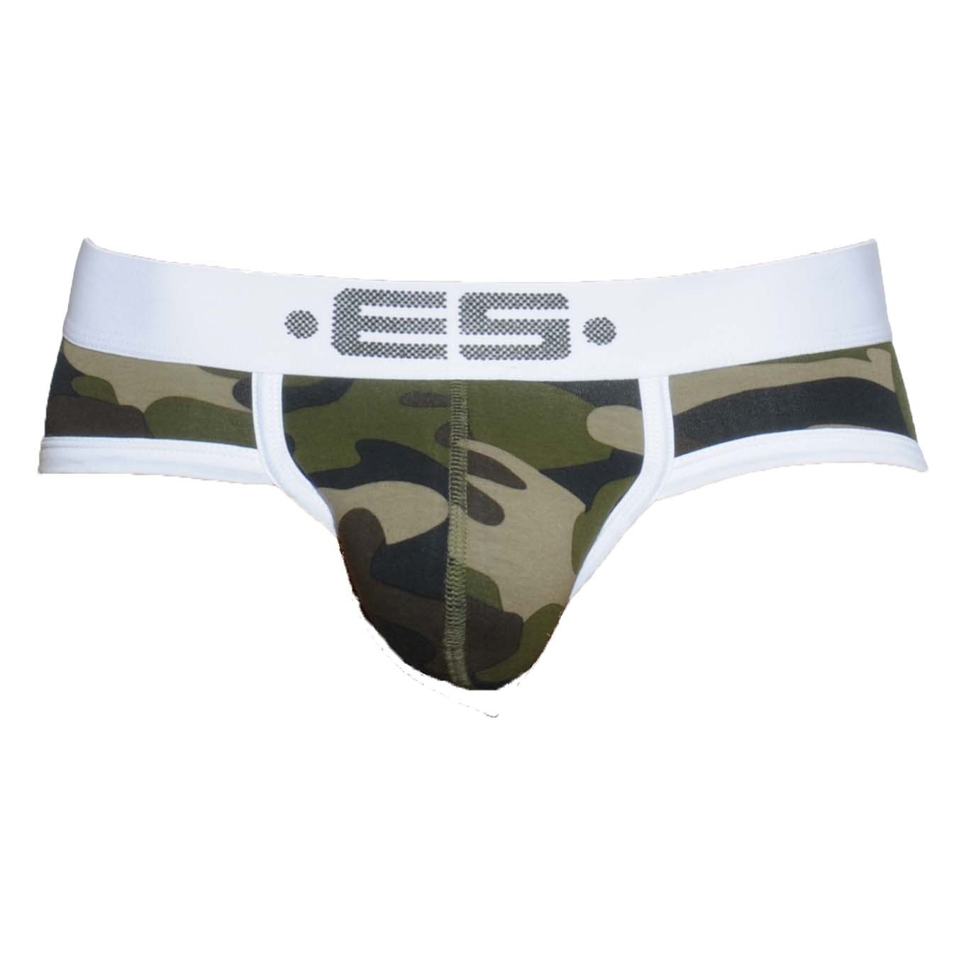 Slip Es Collection Camouflage UN196. Slip très confortable. Large ceinture élastique avec le nom de la marque sur le devant. Imprimé camouflage. 95% Coton, 5% Elasthanne.