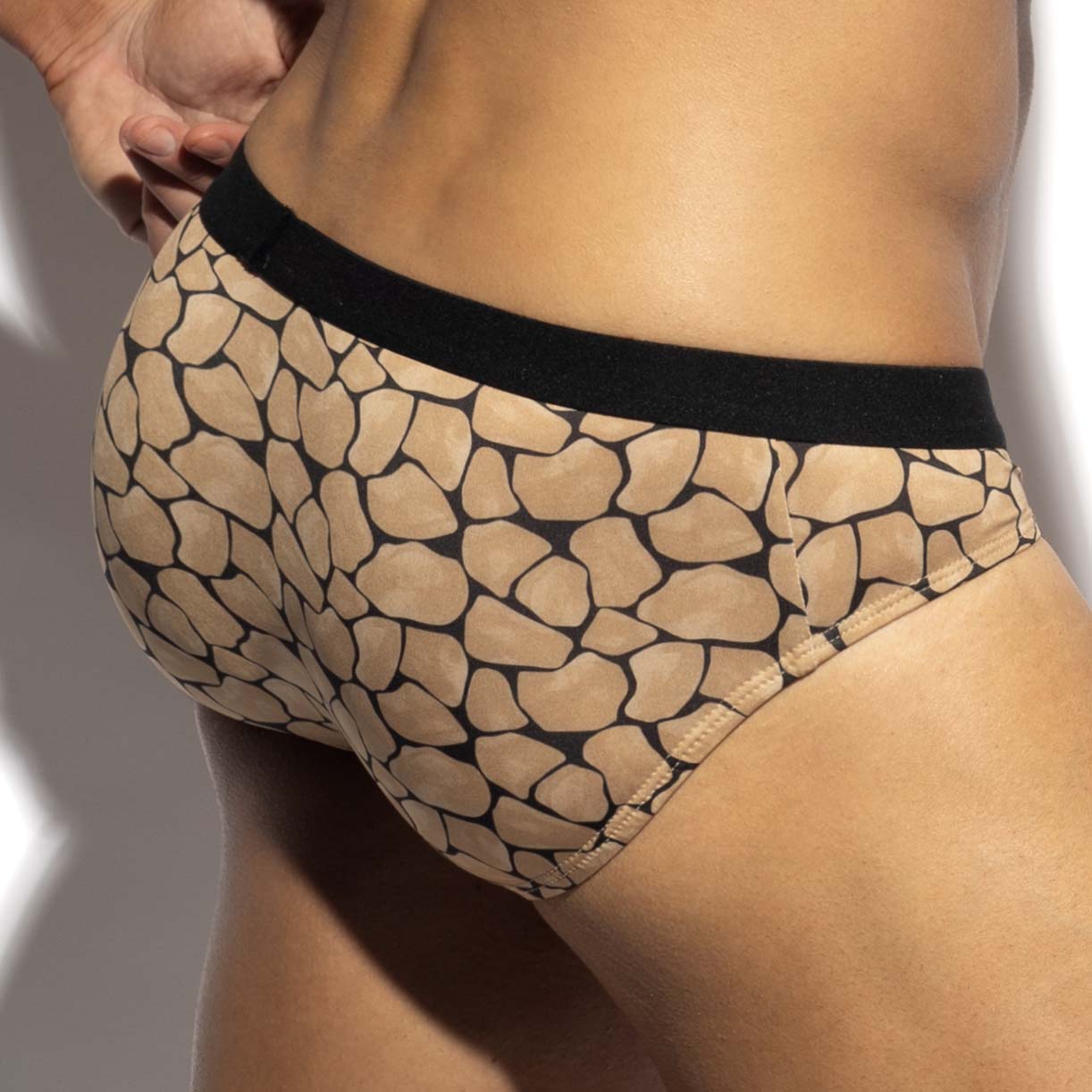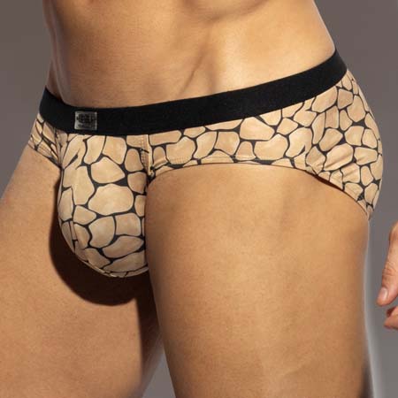 Slip ES Collection Piedra Seca UN641. Slip au confort sublime, orné dun motif pierre sur toute la surface. La matière ultra-extensible et la ceinture fine assurent un maintien et une silhouette parfaits. Lharmonie des couleurs entre le motif et la ceinture apporte une touche de luxe. Une grande poche avant offre un espace généreux pour vos atouts. 88% Polyester, 12% Elasthanne.