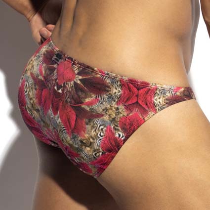 Slip ES Collection Safari UN645. Ce bikini épousera parfaitement vos formes. Osez rugir dans ce slip scintillant d’inspiration safari ! Un motif animalier intégral avec un design métallisé scintillant qui vous démarquera des autres. Tissu semi-transparent, subtil et envoûtant. Matière ultra-extensible avec ceinture et ourlets élastiqués pour une silhouette parfaite. 88% Polyester, 12% Elasthanne.
