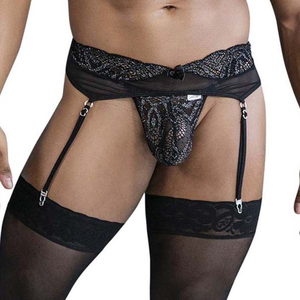 String Candyman 99837. Ensemble string porte-jarretelles en dentelle noire allie élégance et audace. Doté d’une délicate poche en dentelle, de jarretelles réglables et d’une ceinture transparente aux détails façon corset, ce modèle est conçu pour ceux qui aiment exprimer leur sensualité avec assurance. Complétez votre look avec des bas vendu séparément référence 99533. 80% Polyamide, 16% Elasthanne, 4 % Elastique.