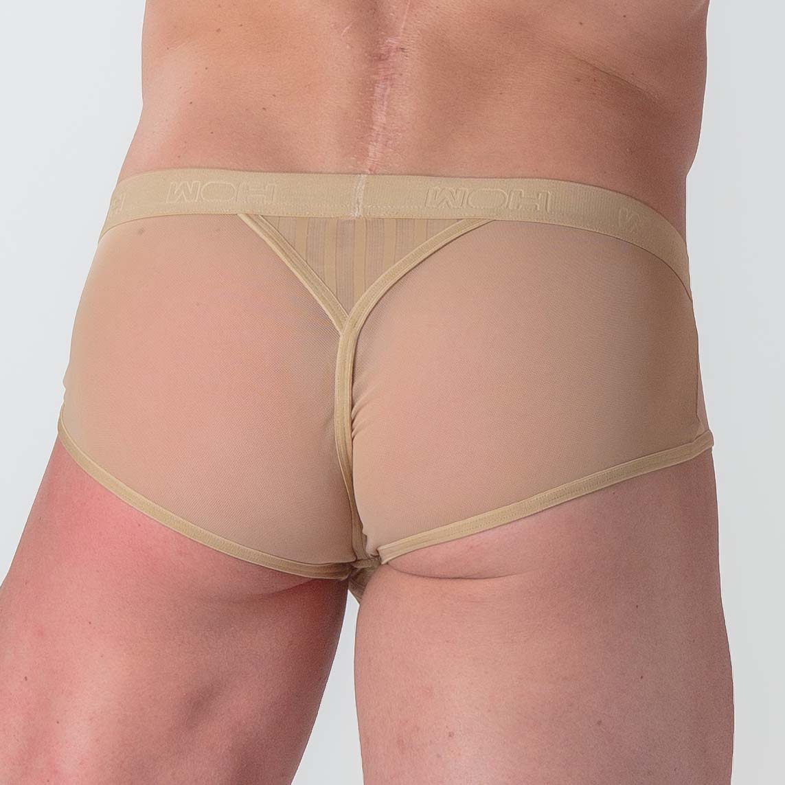 WOH Slip Personal Allure 463017. Slip très sexy avec des rayures transparentes. Poche frontale non doublée. Ouverture horizontale de la poche. Ceinture élastique logotée WOH. 73% Polyamide, 27% Elasthanne.