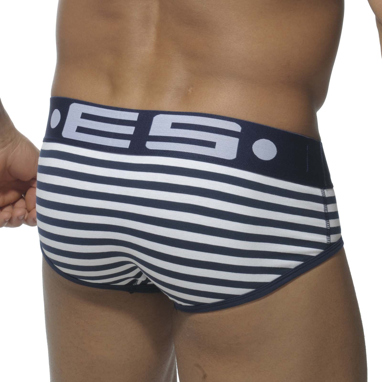 Slip ES Collection en 95% Coton et 5% Elasthanne. Ceinture élastique douce avec logo ES Collection devant et derière. Imprimé de lignes marines avec des coutures contrastées.