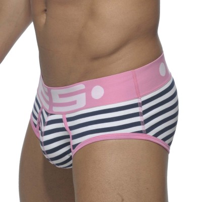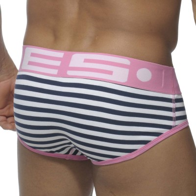 Slip ES Collection en 95% Coton et 5% Elasthanne. Ceinture élastique douce avec logo ES Collection devant et derière. Imprimé de lignes marines avec des coutures contrastées.