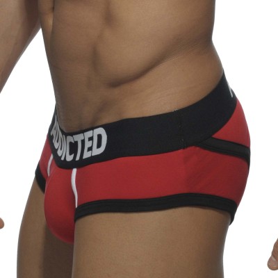 Jock Slip Addicted AD278. Slip sexy et provocant, avec une découpe verticale derrière à la manière d'un Jock Strap afin d'offrir une parfaite liberté de mouvement. Très doux, confortable, léger et totalement transparent. Bordures de couleurs contrastées. Ceinture élastique logotée Addicted. 95% Coton, 5% Elasthanne.
