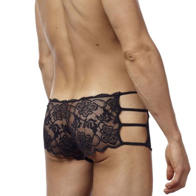 Modèle séduisant avec son look sexy en dentelle. 4 fines ficelles font le lien entre l'avant et l'arrière pour plus de classe. Un confort optimal. 91% Polyamide 9% Spandex.