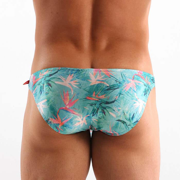 Slip de bain CockSox CX02PR birds of paradise. Ce slip de bain avec un imprimé floral exotique vous emmènera à la splendeur exquise de votre propre paradis. Très confortable à porter grâce à sa poche à l'avant qui met en valeur les formes masculines. 85% Viscose, 10% Polyamide, 5% Elasthanne.
