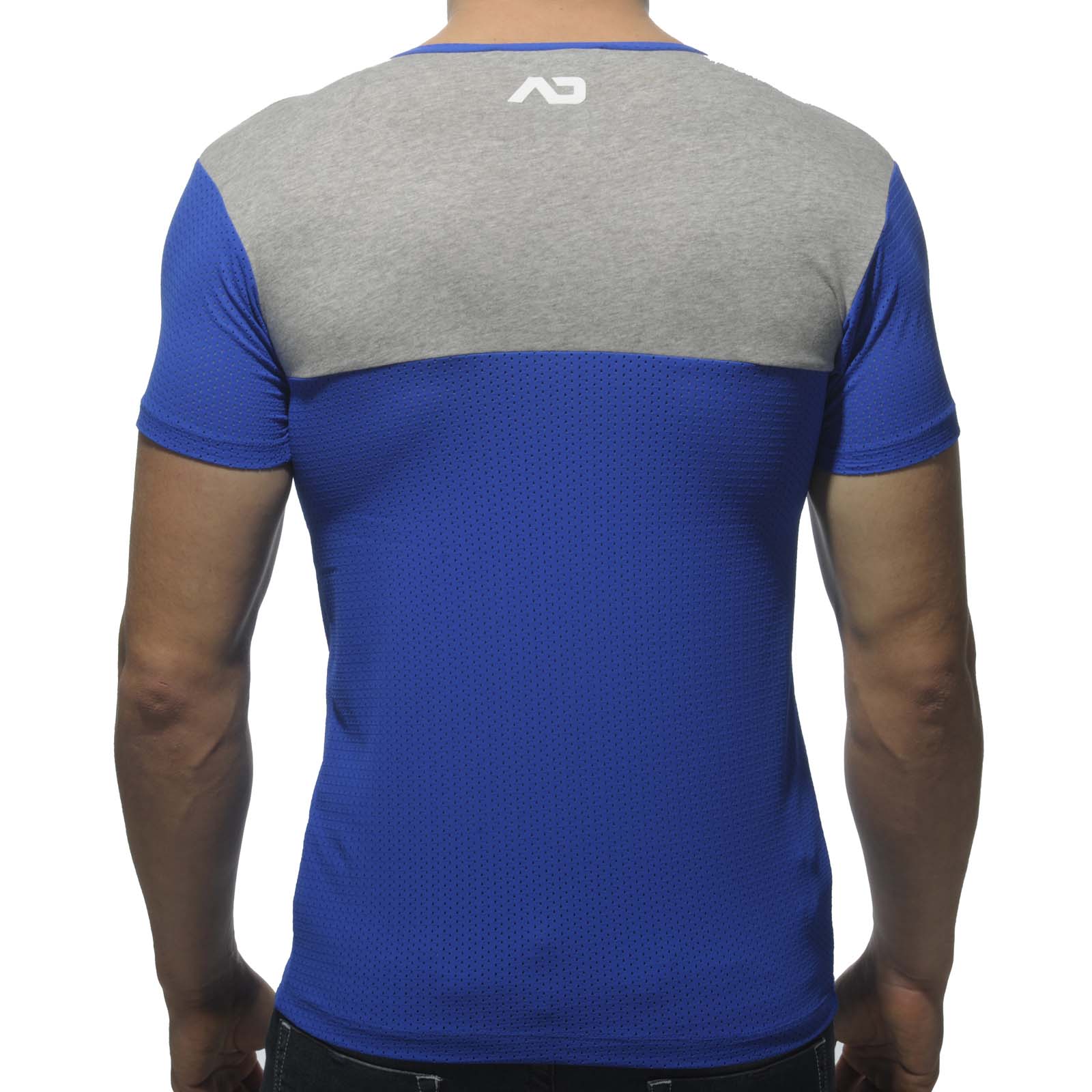 T-Shirt Addicted en 50% Polyamide, 40% Coton, 10% Elasthanne. Col en V Discret Logo AD imprimé au dos. Doux et de très bonne qualité.